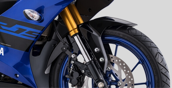 Yamaha R15 V3 di Indonesia sudah disematkan suspensi depan upside down (USD) berwarna emas. Sementara R15 V3 India masih menggunakan suspensi teleskopik.