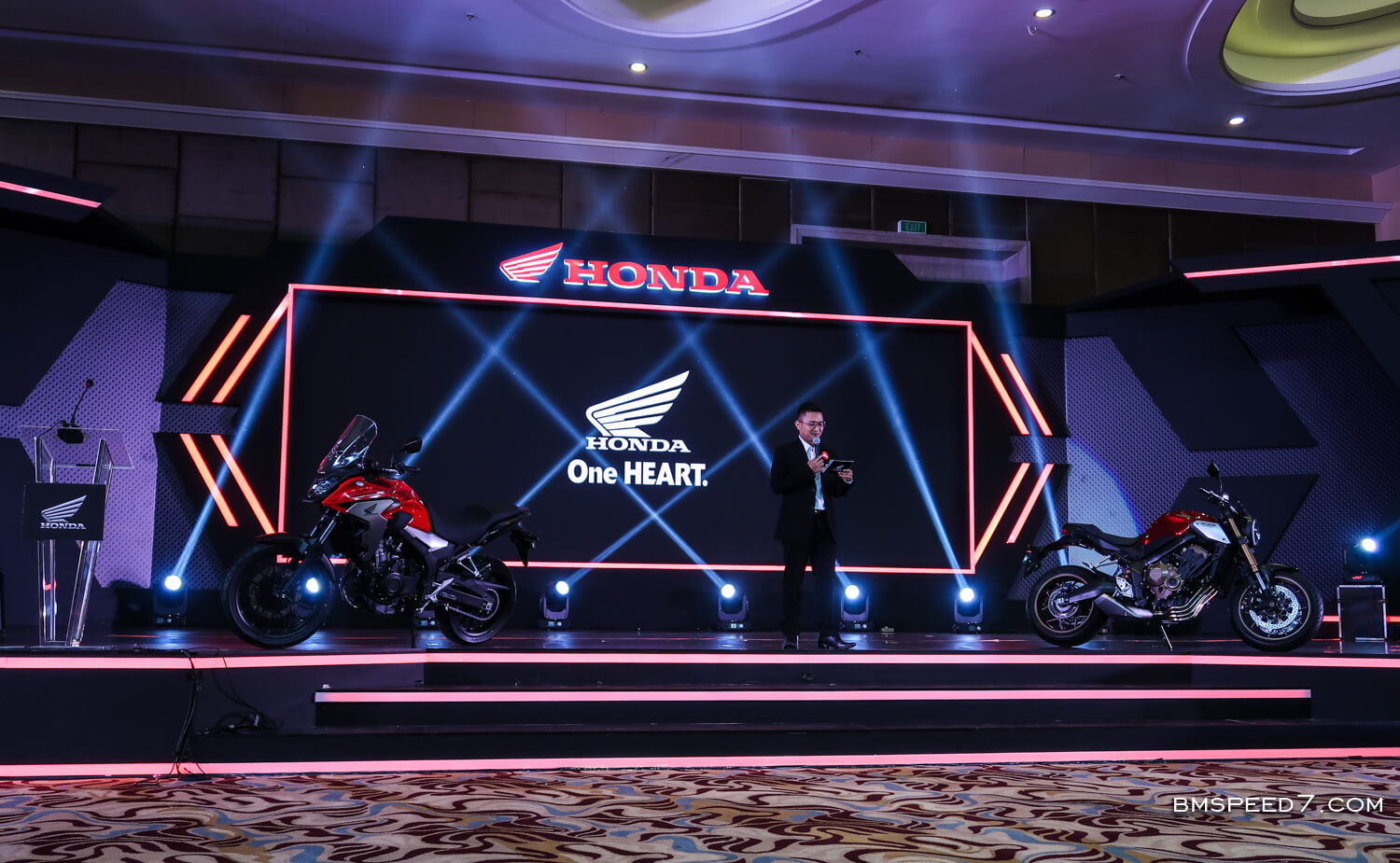 BMSPEED7.COM – Penantian konsumen motor besar (Moge) Honda di Indonesia akan hadirnya produk baru akhirnya terjawab sudah, kemarin (9/2/19) bertepatan dengan kehadiran Marc Marquez ke Indonesia, PT Astra Honda Motor (AHM) yang merupakan ATPM sepeda motor Honda di Indonesia secara resmi merilis sekaligus memasarkan 5 moge Honda terbaru 2019 yang dimana salah satunya adalah Honda CB650R Sport Neo Cafe !