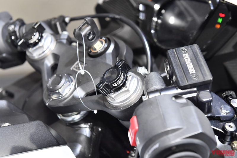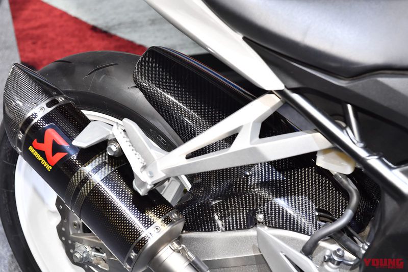 Bisa dilihat,Honda CBR250RR Putih ini sudah tidak standart lagi,ia sudah disematkan beberapa aksesoris aftermarket seperti knalpot Akrapovic CBR250RR,sok Upside with adjuster by Moriwaki,Master rem Moriwaki,Single Seater Cover Honda Genunine Part,Hugger Motif Carbon.