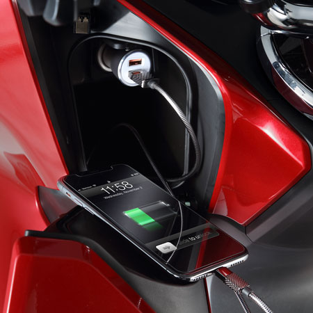 | Tyres | Front : 100/80 – 14 M/C (48P) Rear : 120/70 – 14 M/C (61P) |