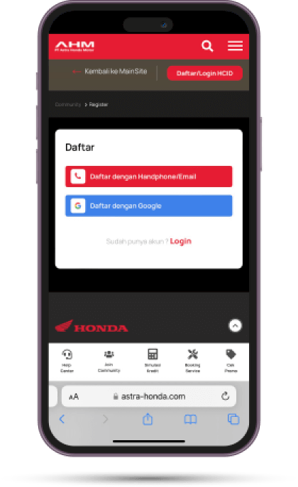 Daftar pakai HCID via website Honda Community