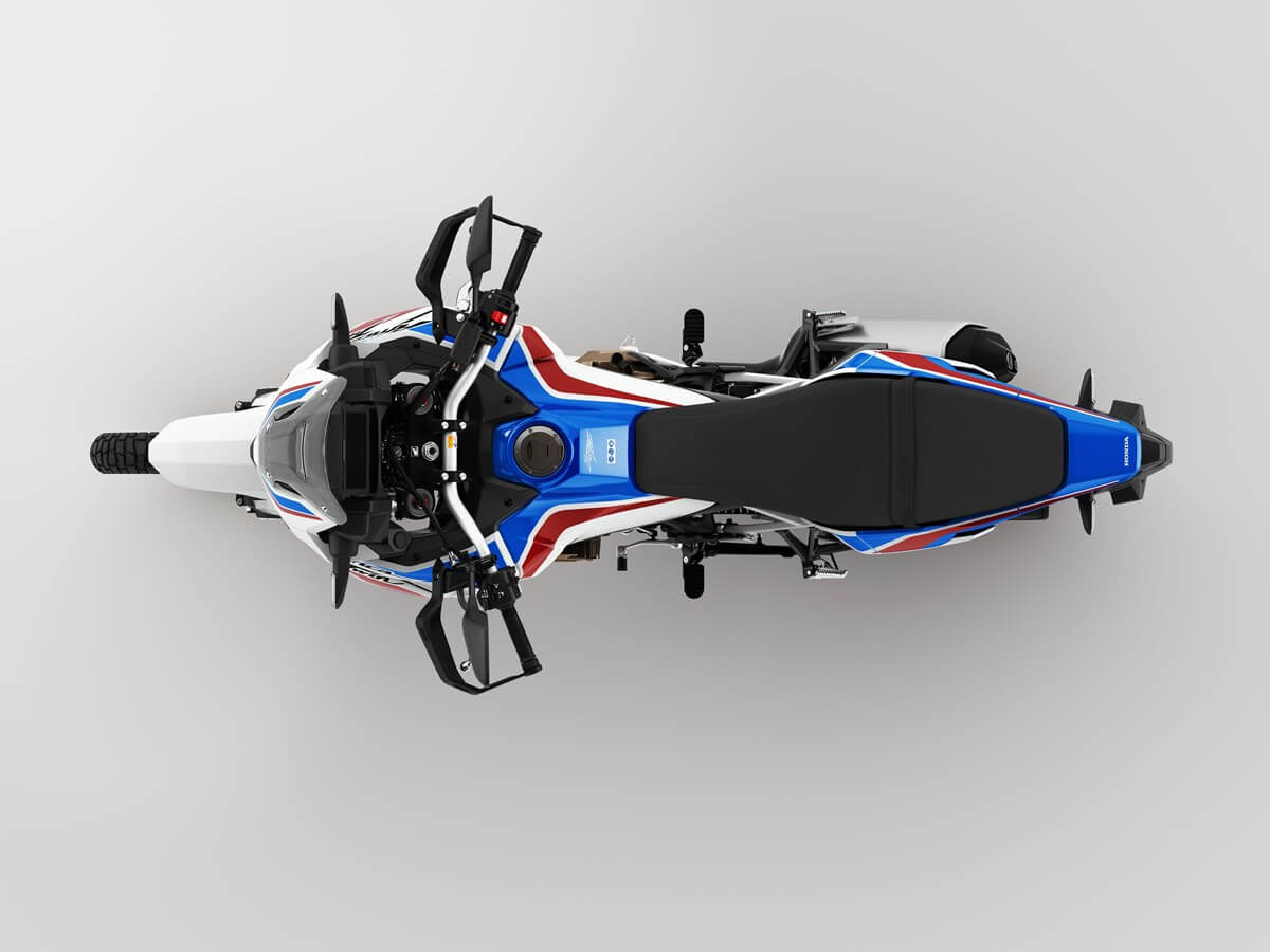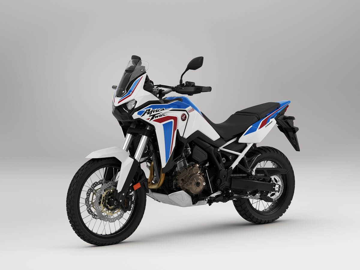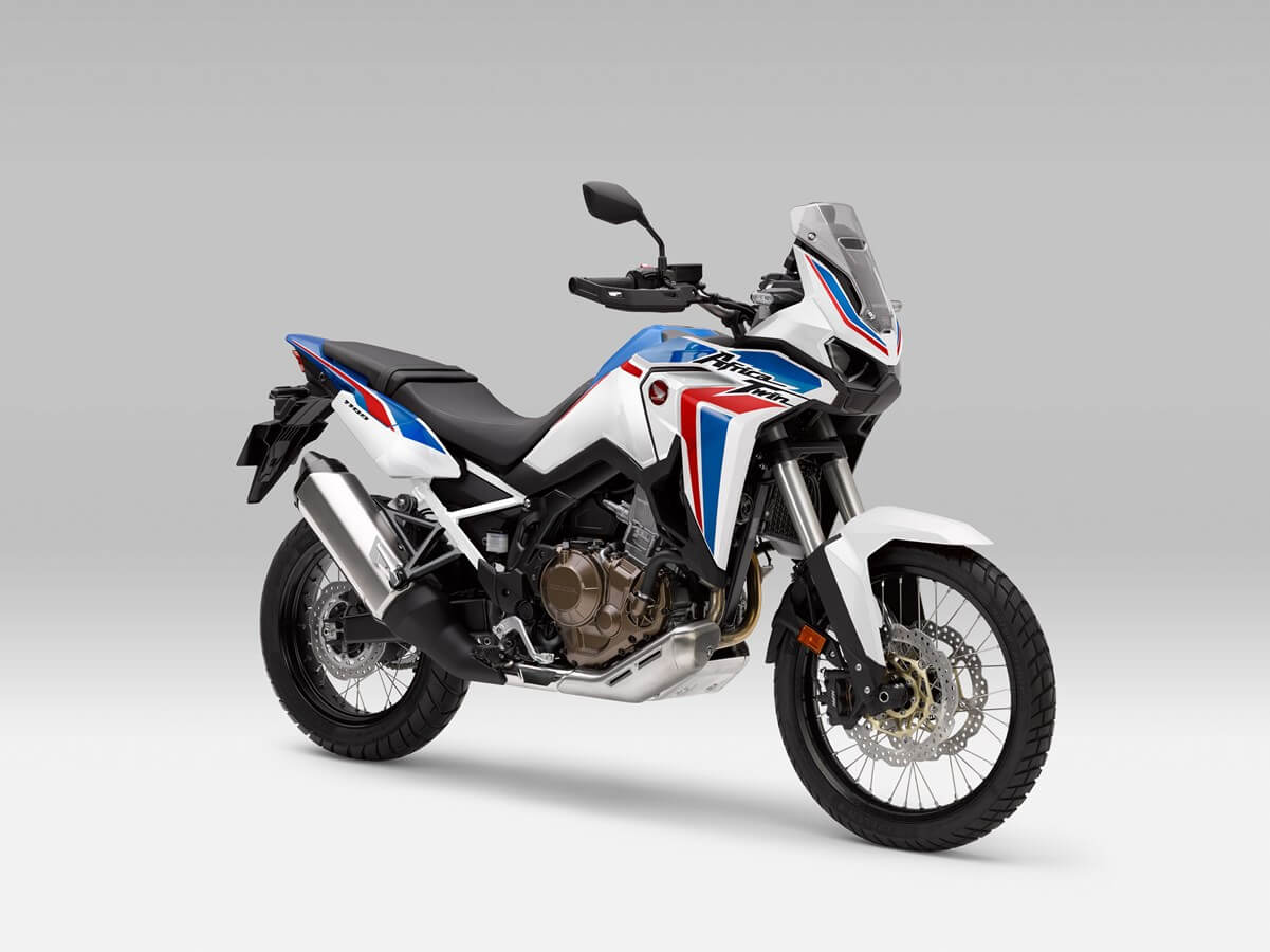 Honda CRF1100L Africa Twin 2021 warna Pearl Glare White Tricolour tersebut menemani warna yang sudah ada sebelumnya yaitu Grand Prix Red dan Matte Ballistic Black.