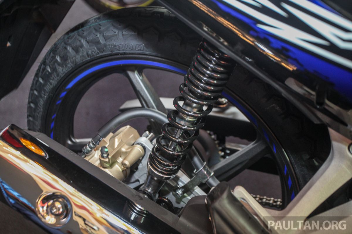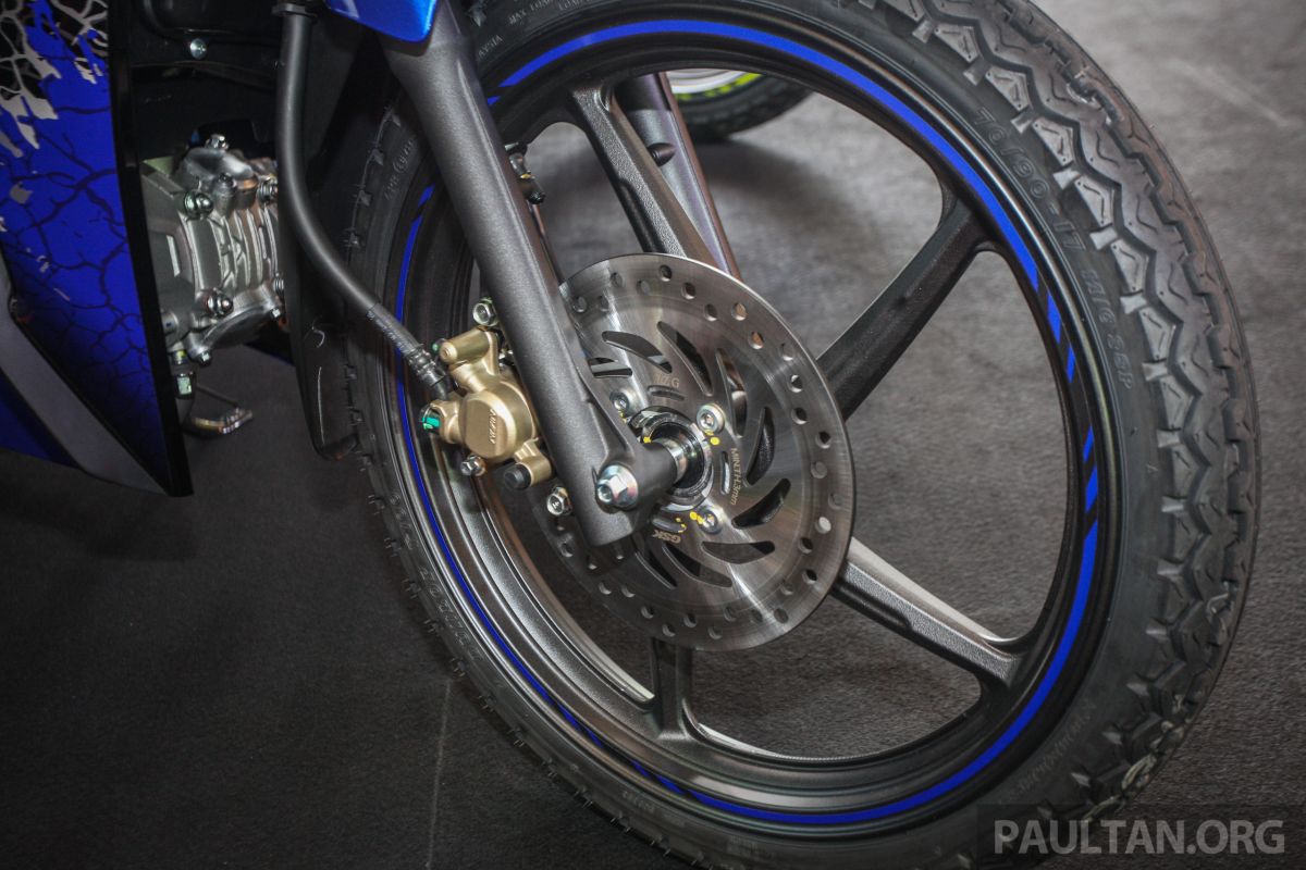 Ukuran Tayar | Depan : 70/90 – 17M/C 38P (Tanpa Tiub) Belakang : 80/90 – 17M/C 50P (Tanpa Tiub) |