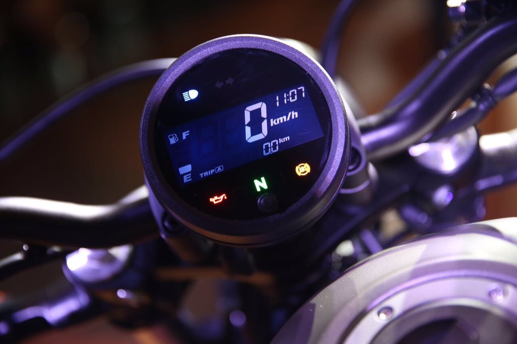 Bukan cuma hanya bentuknya yang sama sama bulat. Cluster speedometer juga mirip lho dimana bagian tengah dibuat berbentuk persegi panjang untuk menampilkan beragam informasi seperti kondisi bahan bakar, speedometer dan odometer. Namun di Rebel lebih lengkap karena ketambahan trip meter dan jam.
