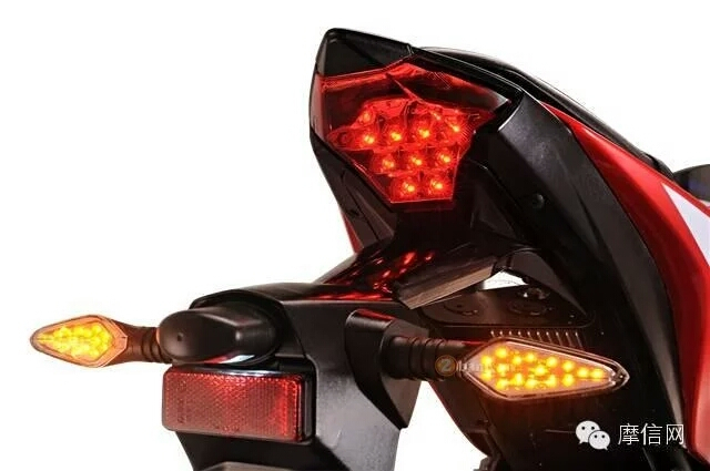 Sekilas jika dilihat kasat mata memang desain motor ini sama persis dengan R series Yamaha,bahkan sampean mungkin mengira ini warna baru atau bahkan R25/Yamaha R3 modifikasi. La pie masbro…lawong dari desain shape sama plek kok,baik pada lekukan fairing,moncong headlamp ala ikan Hiu dengan desain lancip plus buritan belakang yang nungging khas R25/R3,spakbor juga bisa lepas pasang, velg sama palang “Y” juga.