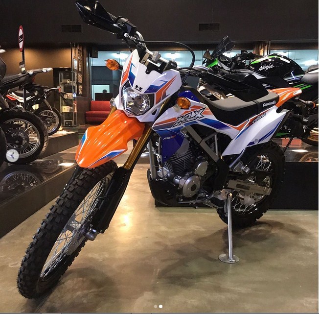 Mungkin maksud dari Kawasaki melabeli Xtream pada KLX150BF lantaran perpaduan warnanya yang enggak biasa,beda dengan KLX150BF yang sudah dirilis beberapa waktu lalu (klik DISINI) warnanya tergolong kalem.