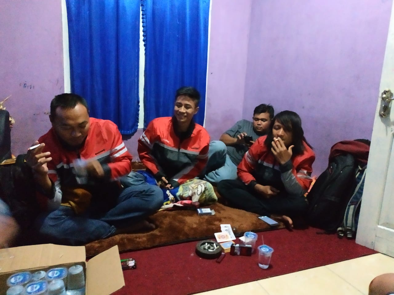 Setelah anggota kumpul, bos Roby Suhendra (Robydriver) bersama mas Ringgo (Gandem21) keluar untuk membeli konsumsi buat kami yang sudah kelaparan. Mereka berdua membeli Nasi Goreng, Tempe kemul khas Dieng dan Air Mineral. Sederhana memang, tapi terasa nikmat lantaran terbawa kebersamaan.