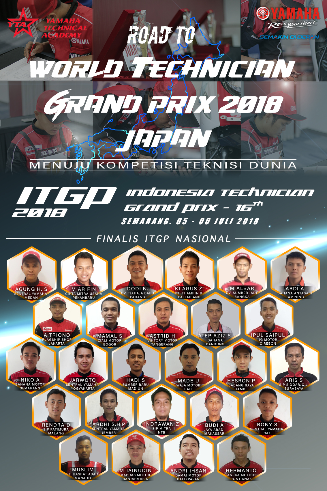 Khusus untuk pemenang juara 1 ITGP 2018 (Ardhi Sulistiyo, Jember) akan terbang ke Jepang sebagai wakil Yamaha Indonesia di WTGP (World Technician Grand Prix) 2018 untuk kemudian dilombakan dengan mekanik dari berbagi Benua seperti Asia, Amerika, Australia dan Eropa.