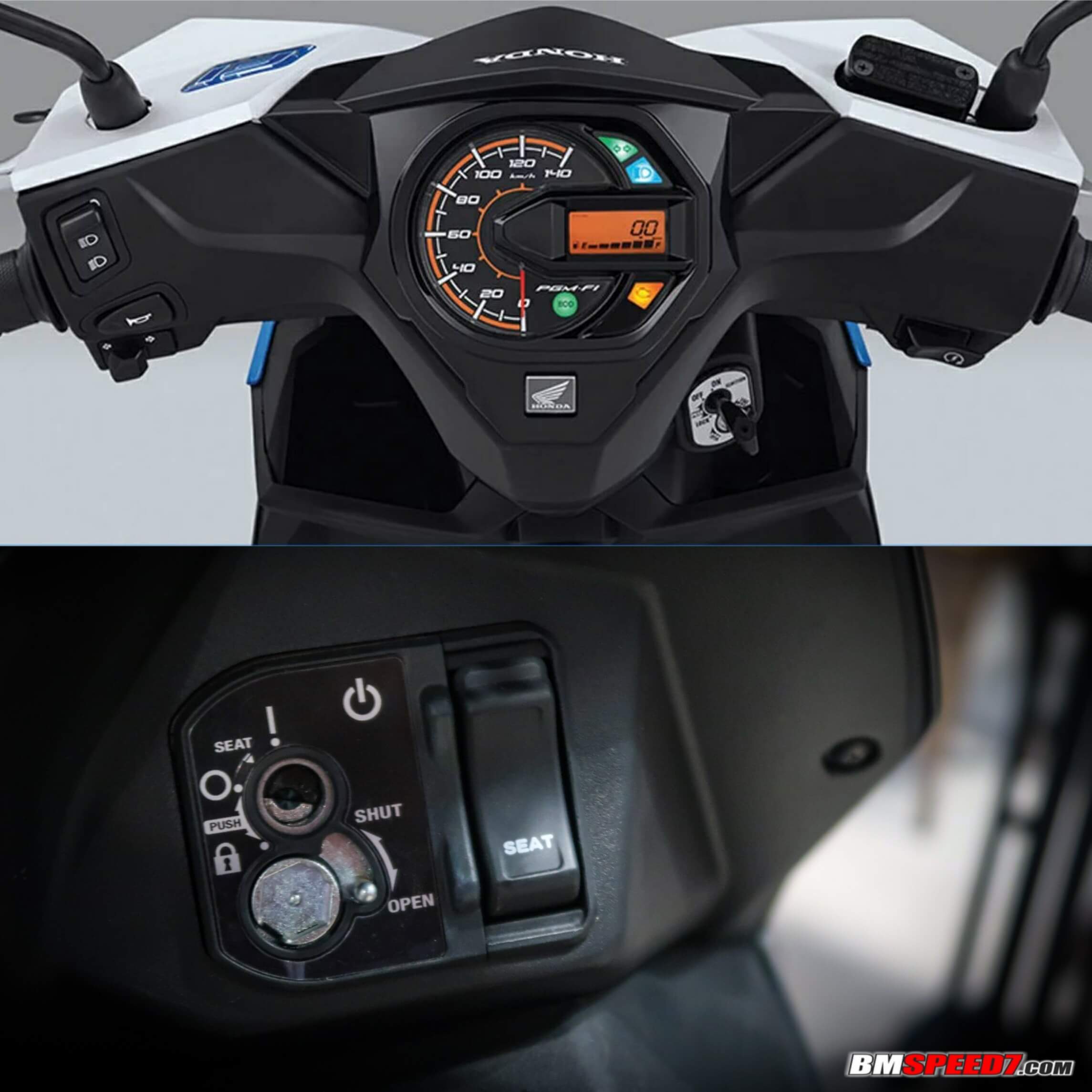 4.) Secure Key System dengan Seat Opener, membuka jok kini makin praktis karena kita hanya mengarahkan anak kunci ke ”Seat” dan tekan tombol untuk membuka joknya.