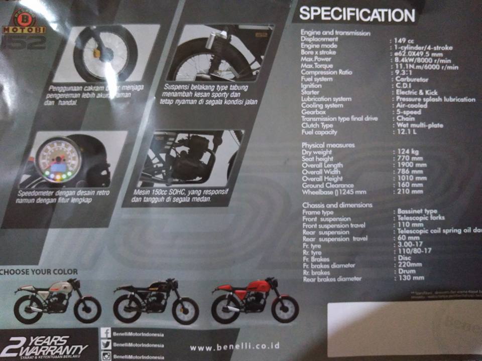 (Baca : Harga Benelli Motobi 200 Evo 2018, Pilihan Warna, Spesifikasi dan Fitur)