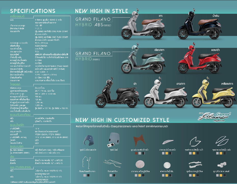 Spesiifkasi Yamaha Grand Filano Hybrid