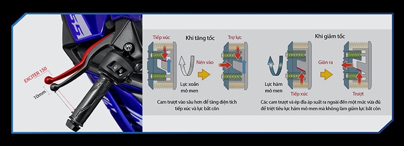 - Assist & Slipper Clutch yang membuat tuas kopling menjadi lebih ringan serta mencangah ban selip ketika menurunkan gigi.